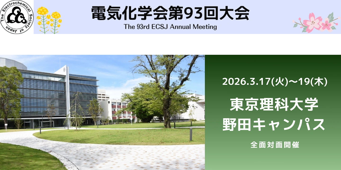 | 内 容 | シンポジウム講演/一般学術講演/各賞表彰/ 電気化学会賞(武井賞)/受賞講演/ 加藤記念講演/企業展示/懇親会 |