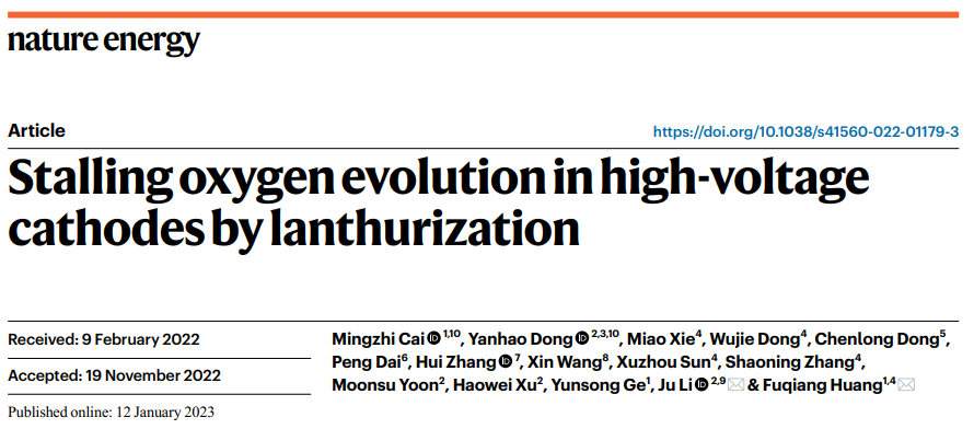 北京大学のFuqiang Huang氏とMITのJu Li氏らが率いるチームは、高電圧層状正極材料における酸素発生の問題の体系的な分析を実施した。 彼らは、層状カソード材料の高電圧安定性を大幅に改善するための普遍的な戦略を提案しました。 この戦略は、制御可能な液相イオン交換反応に基づいており、コーティングの高い均一性を達成するだけでなく、遷移金属と酸素の間のイオン結合を強化します。 活性酸素の表面への移動を抑制します。 この戦略は優れた普遍性を示しており、すべての層状酸化物陰極に適用できるため、大規模生産が可能になります。 これは、高電圧三元ニッケルリッチカソードおよびリチウムリッチマンガンベースカソードの工業化のための新しいアプローチを提供します。 この研究は、Mingzhi Cai と Yanhao Dong が共同筆頭著者として、一流雑誌 Nature Energy に掲載されました。